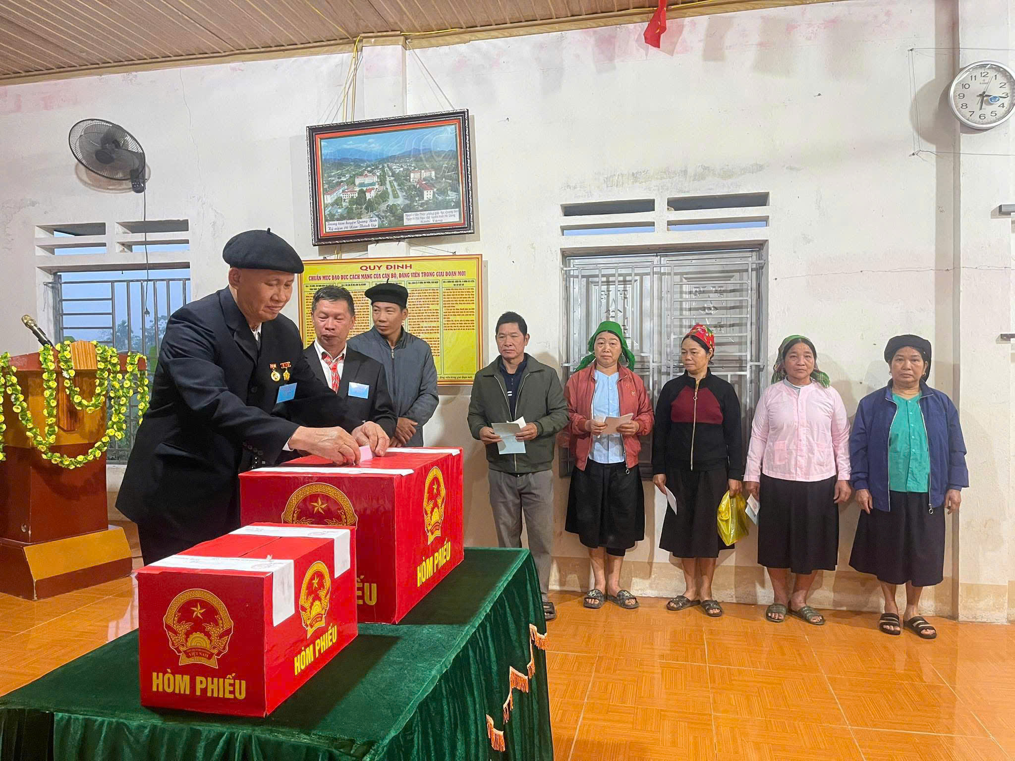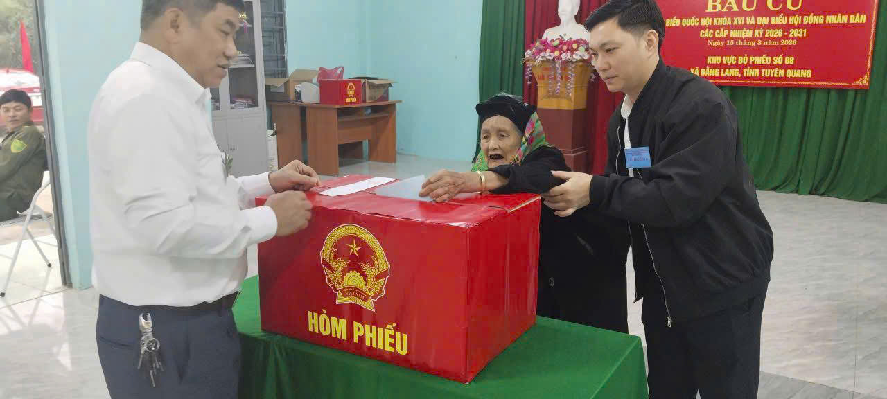 Ngay sau lễ khai mạc, những lá phiếu đầu tiên đã được cử tri trân trọng bỏ vào hòm phiếu, thể hiện quyền và nghĩa vụ công dân. Không khí ngày bầu cử tại Bằng Lang diễn ra an toàn, dân chủ, đúng luật, thực sự là ngày hội của toàn dân.