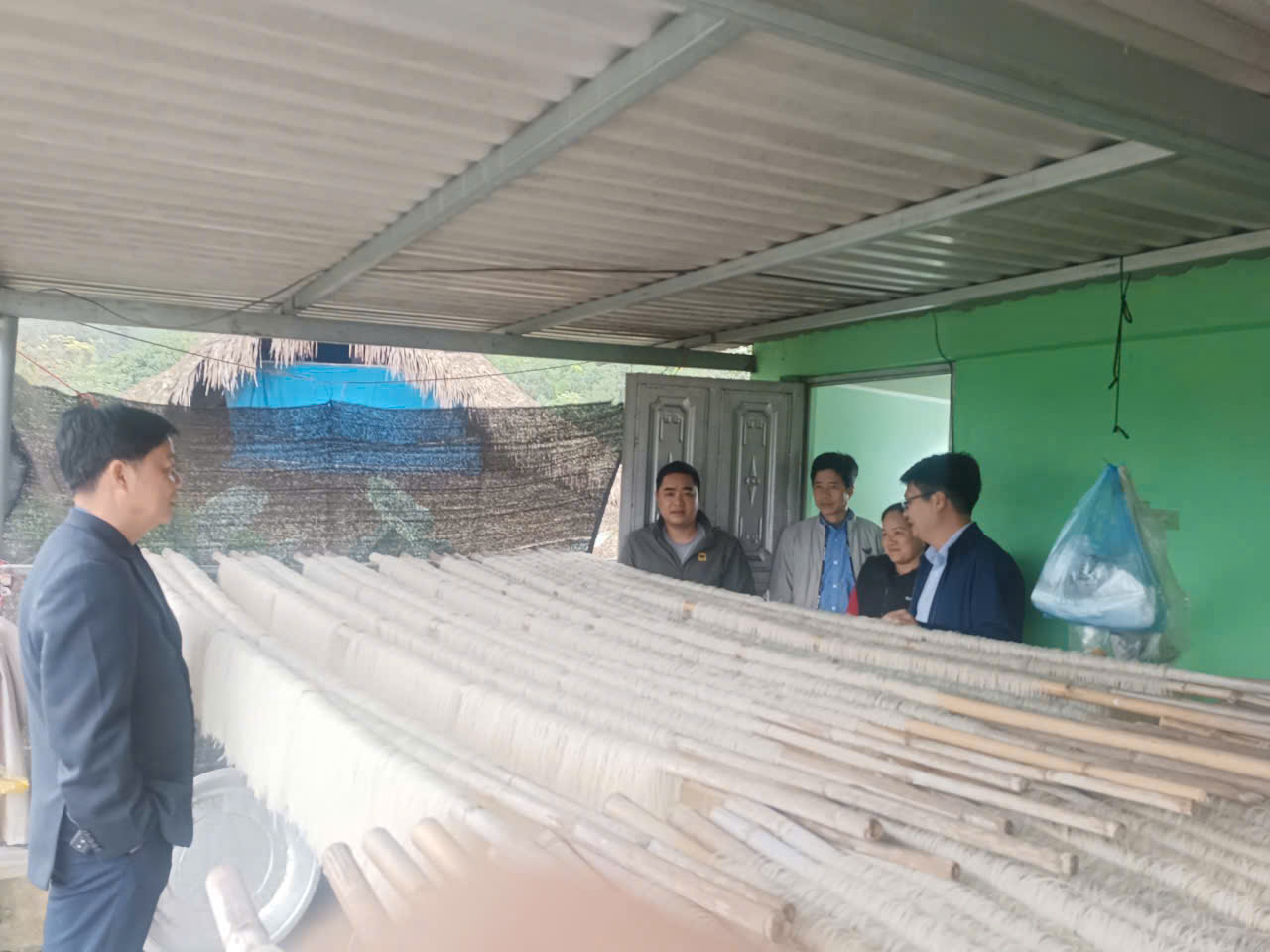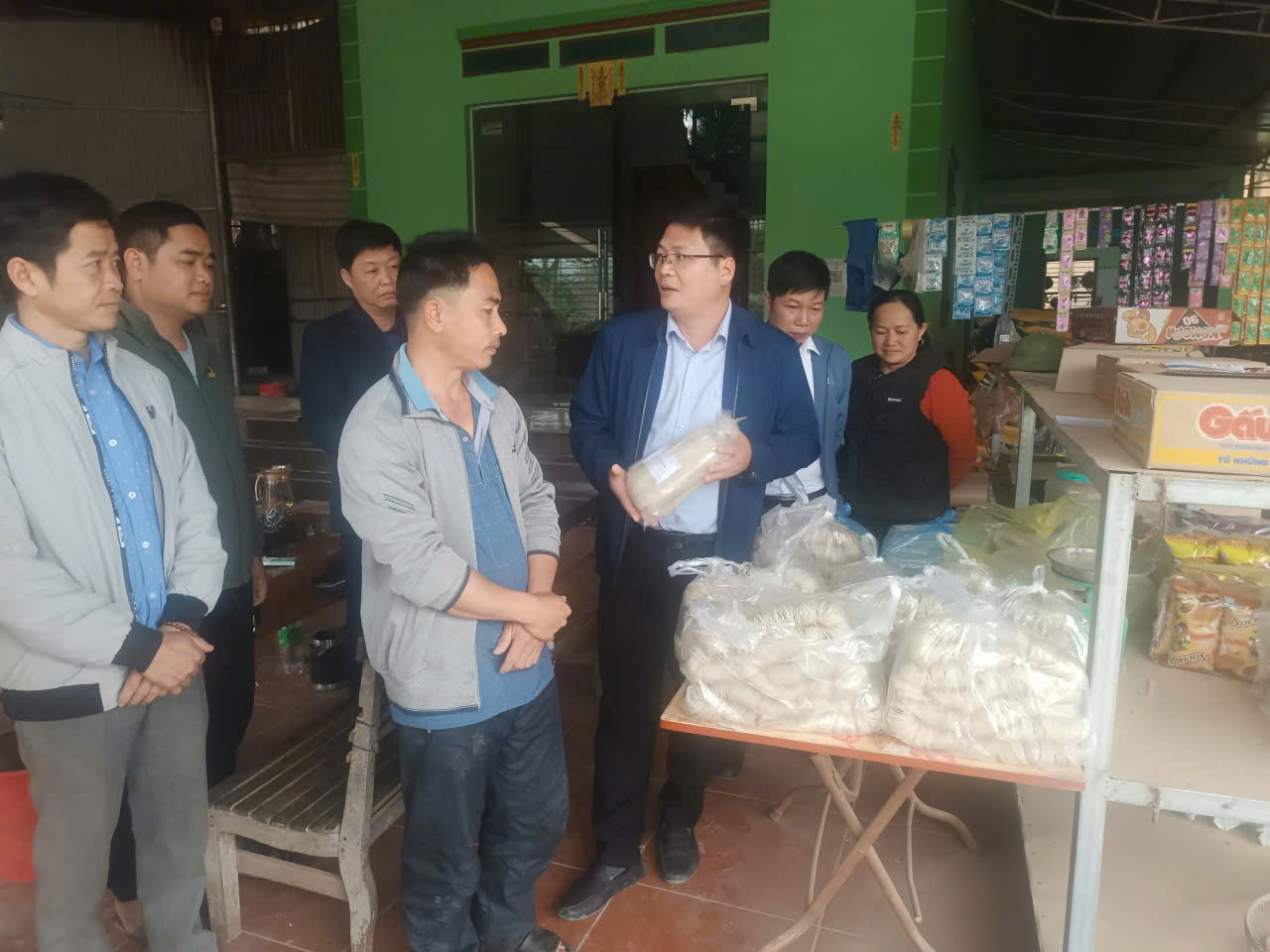Thường trực Đảng ủy thăm cơ sở sản xuất bún, phở khô của gia đình anh Toản tại thôn Hạ