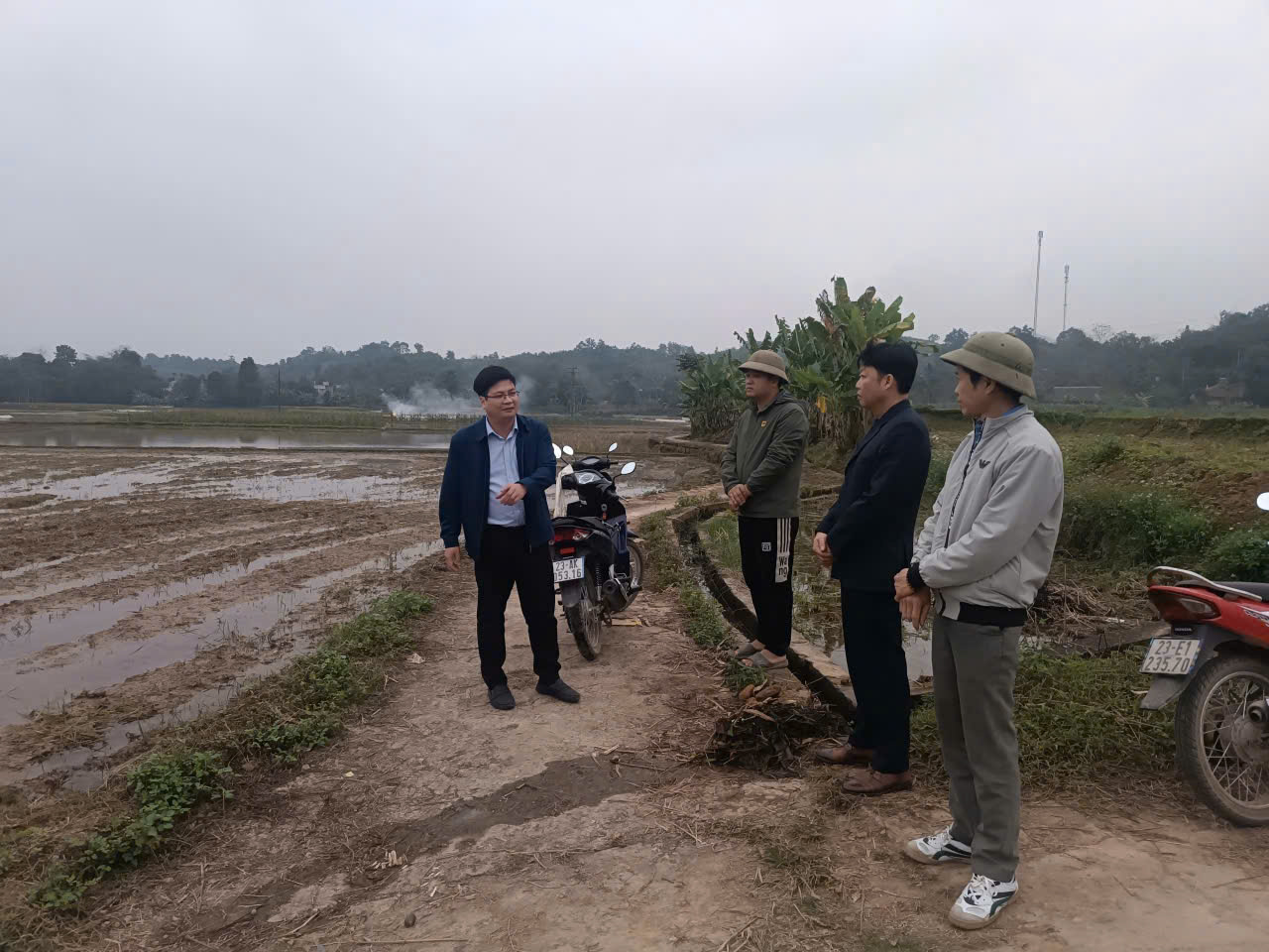 Thường trực Đảng ủy kiểm tra khu cánh đồng dồn điền đổi thửa của thôn Hạ