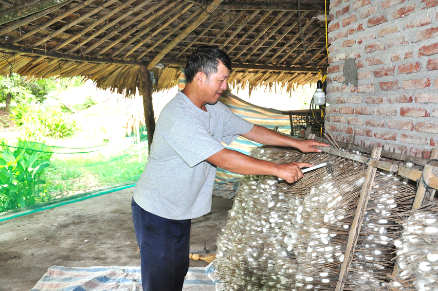 Người đi tiên phong chuyển đất ruộng trồng dâu, lấy lá nuôi tằm là anh Nguyễn Tiến Mạnh thôn Hạ. Cách đây gần 3 năm, anh Mạnh sang Yên Bái học nghề, về quê anh chuyển gần 1,2 ha đất vườn trồng dâu trước sự ngỡ ngàng của làng xóm. Anh Mạnh cho biết: Với 24 m2 làm nhà nuôi tằm, mỗi tháng 2 lứa tằm. Chi phí giống tằm mỗi lứa 500 ngàn đồng. Nuôi một lứa mất 9 ngày, đêm liên tục, thu được 25 – 30 kg kén. Với 2 lứa/tháng thu được khoảng 55 – 60 kg kén, tương đương thu nhập 6 triệu đồng. Nếu làm tốt, mỗi gia đình trồng 1 mẫu cây dâu lấy lá nuôi tằm sẽ thu về ít nhất là 500 triệu đồng/năm. Lợi nhuận từ việc trồng dâu, nuôi tằm của anh Mạnh đã thu hút được bà con trong các thôn tìm đến học hỏi, làm theo.