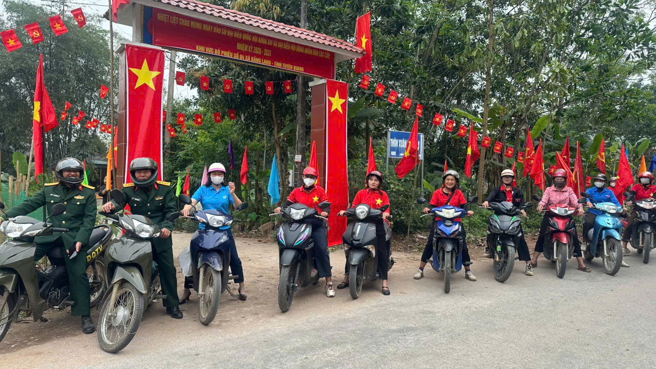 Hòa chung không khí sôi nổi của ngày hội toàn dân, Hội Liên hiệp Phụ nữ Việt Nam xã Bằng Lang đã tích cực phối hợp với Hội Cựu chiến binh, Đoàn Thanh niên, Công an, Quân sự và Trung tâm Dịch vụ công xã tổ chức nhiều hoạt động tuyên truyền, cổ động bầu cử trên địa bàn. Ngày 13/3/2026, trên khắp các tuyến đường làng, ngõ xóm, hình ảnh các chị em phụ nữ, Đoàn Thanh Niên, Cựu Chiến Binh trong trang phục áo Hội rực rỡ, cùng màu cờ Tổ quốc nổi bật trên những chiếc xe lưu động đã tạo nên bức tranh sinh động, đầy khí thế. Cờ hoa được trang hoàng bắt mắt, loa phát thanh lưu động vang lên truyền tải các nội dung quan trọng về quyền và nghĩa vụ của công dân, ý nghĩa của cuộc bầu cử cũng như tầm quan trọng của mỗi lá phiếu.