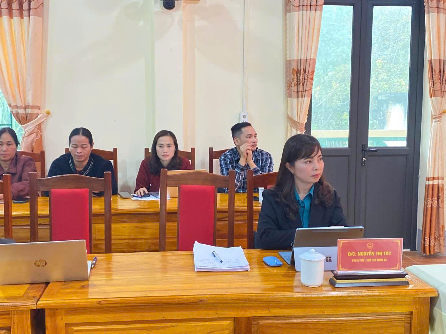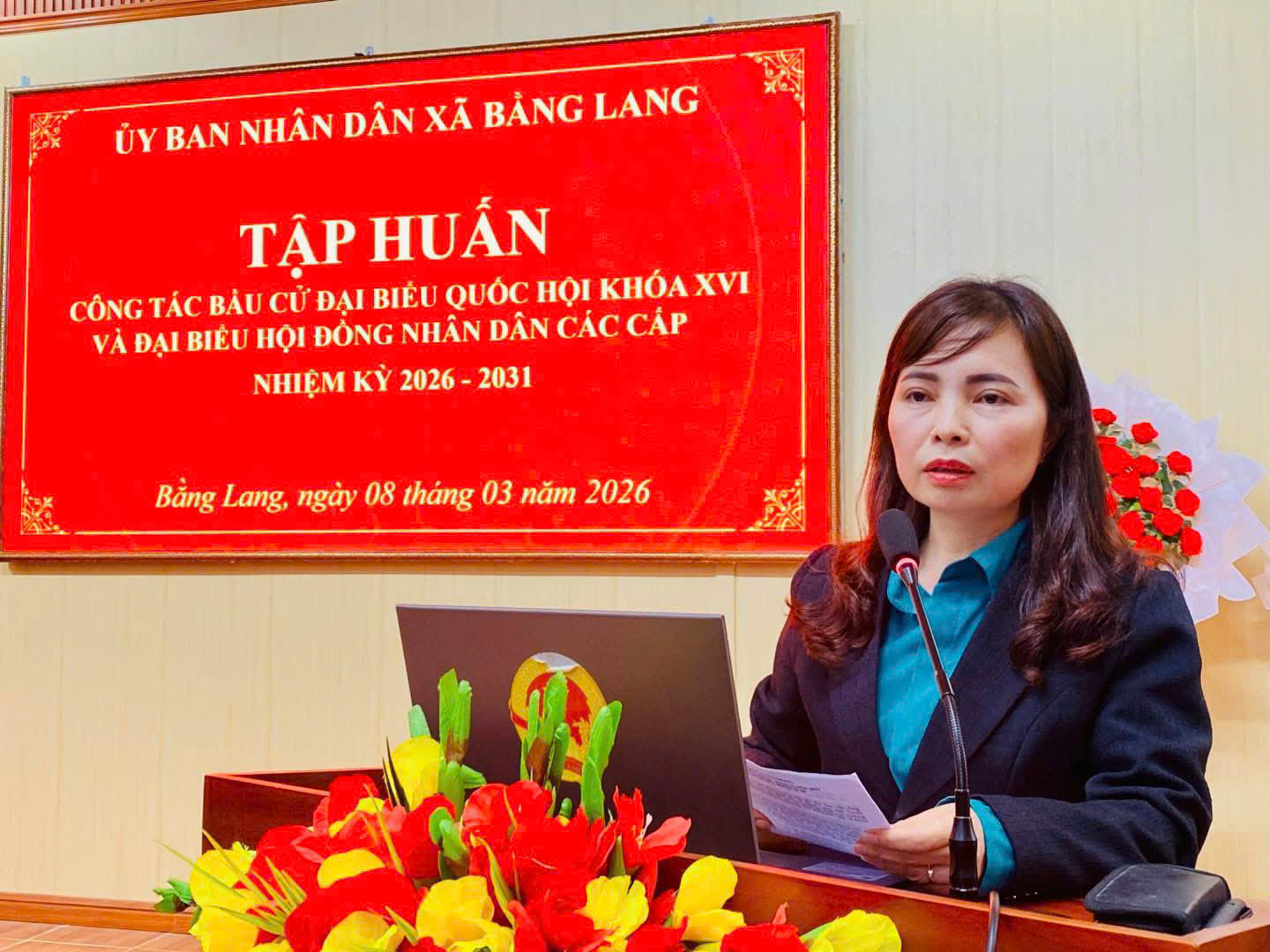 Đồng chí : Nguyễn Thị Túc, phó bí thư Đảng uỷ, Chủ tịch UBND xã Bằng Lang dự và chỉ đạo lớp tập huấn bầu cử